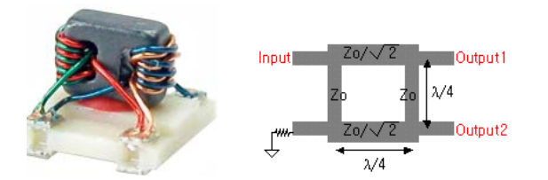 - 용도 : 전송선로 등에 전력을 균등하게 배분하여 사용하고 싶을 때 사용됨, 고주파 회로 구현에 사용되는 부품의 일종이다.