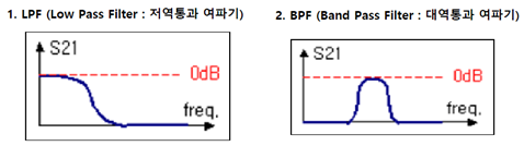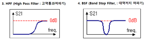 - 저역통과, 대역통과, 고역통과, 대역저지 필터 등이 있는데 각 필터의 S 파라메타는 아래 사진을 참고한다.