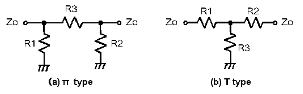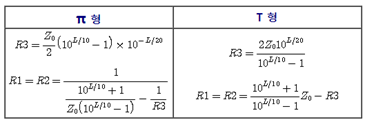 - 3개의 저항 소자를 사용하는 T형, π 형의 감쇠기 회로 구조등으로 이루어진다.
