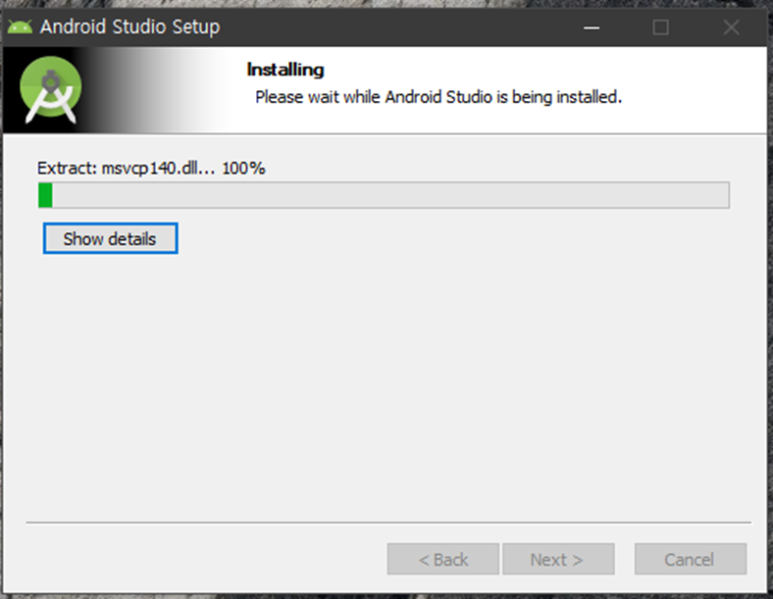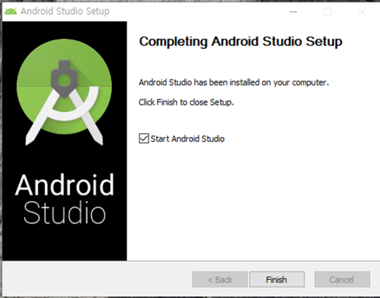 설치가 완료되고, Start Android Studio 를 하면 실행된다.