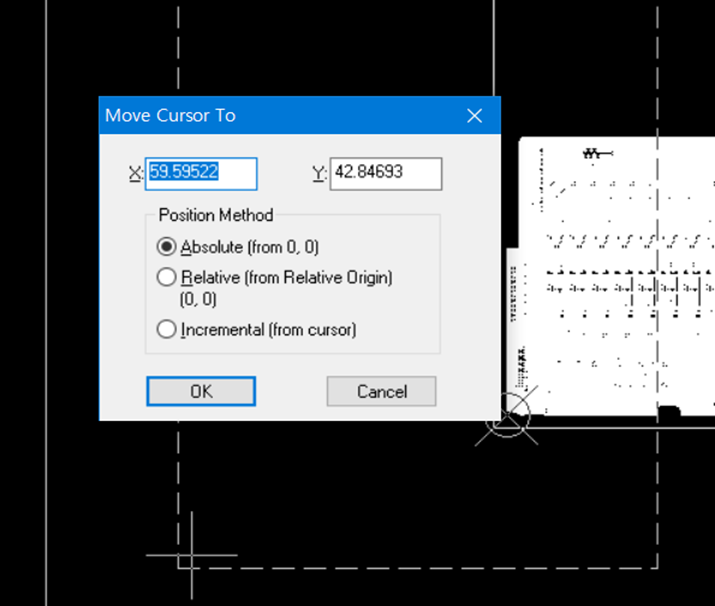 6) 키보드의 x 를 눌러 아래 창으로 진입후 옮기고 싶은 좌표를 작성하고 OK를 누른다.
