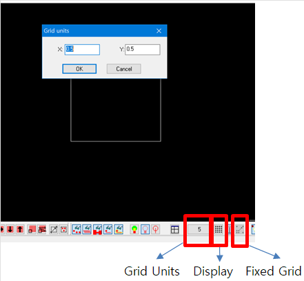 1) Grid 조정 : 11.14 Ver. 부터 있습니다. - Display Grid 선택 : 단축키 G 또는 격자모양 선택