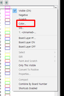 2) Display Color 설정 : 원하는 Layer를 선택한 후 마우스 오른쪽 클릭 -> Color 선택