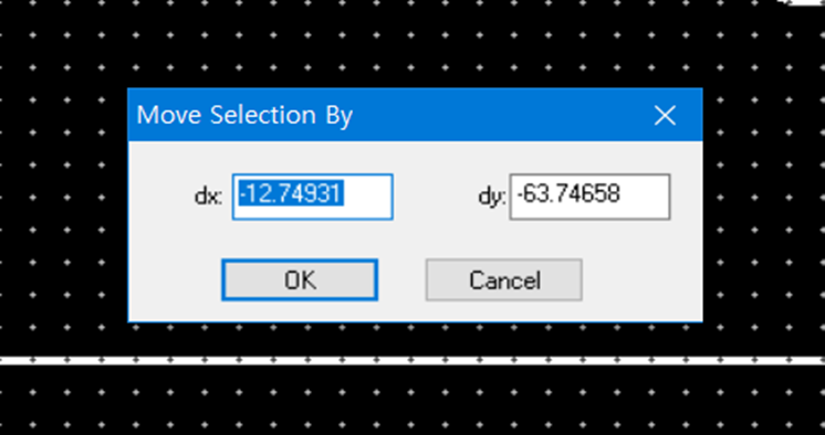 6-1) dx, dy 작성 란에 (기준좌표 - 옮길 Layer의 좌표) 를 계산한 값을 작성한다.