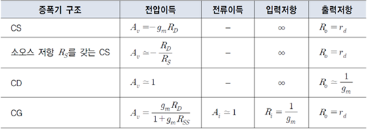 ◆ MOSFET 증폭기는 BJT 증폭기와 비교했을 때, CE 증폭기 – CS 증폭기 / CC 증폭기 – CD 증폭기 / CB 증폭기 – CD 증폭기와 특성이 비슷하다고 볼 수 있다.