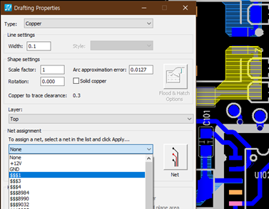 Copper 그려준 뒤 Properties의 Net Assignment 에서 해당하는 Net Name을 찾아 적용해줘야만 나중에 Design Rule Check 를 할 때 Error 가 나지 않고, 혹시 잘못 그려진 부분이 있다면 오류를 잡아낼 수 있기 때문이다.